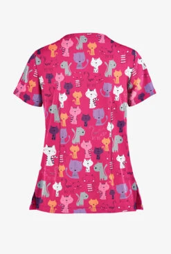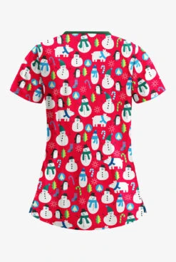 Butter-Soft North Pole Party Red Women’s 2-Pocket Relaxed Fit V-Neck Print Scrub Top