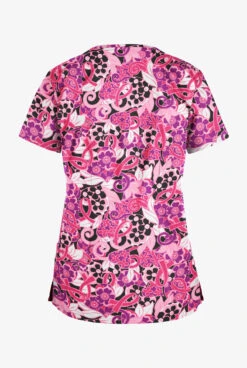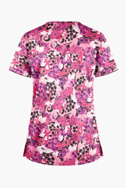 Butter-Soft Nordic Forest Berry Burst Women’s 2-Pocket With Angled Welt V-Neck Print Scrub Top