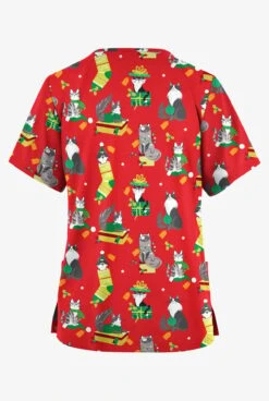 Butter-Soft Originals Playful Christmas Red Women’s 2-Pocket Classic Fit V-Neck Printed Scrub Top