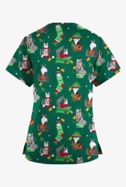 Butter-Soft Originals Playful Christmas Hunter Women’s 4-Pocket Rounded V-Neck Printed Scrub Top