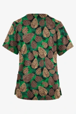 Butter-Soft Originals Winter Pine Cones Sea Frost Women’s 4-Pocket Rounded V-Neck Printed Scrub Top