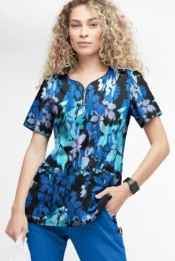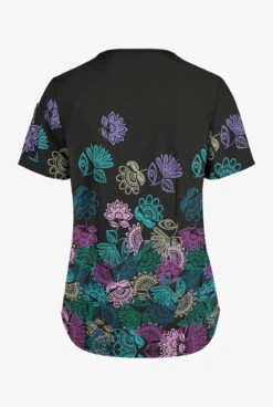 Easy STRETCH By Butter-Soft™ Magical Garden Women’s 4-Pocket Zip Curved Neck Printed Scrub Top