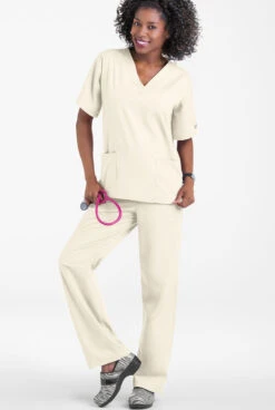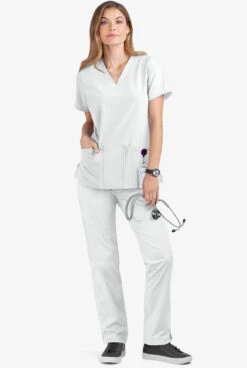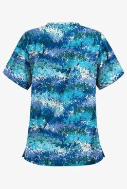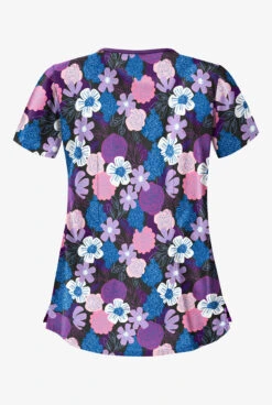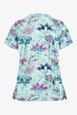 Butter-Soft Chalked Floral Cooling Oasis Women’s 2-Pocket Key-Hole Neck Detailed Print Scrub Top