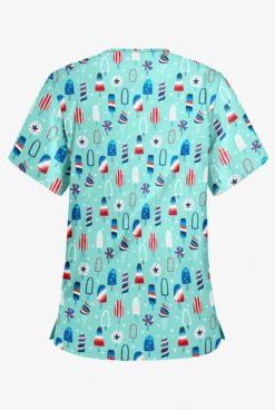 Best Buy Ice Cream Celebration Blue Women’s 3-Pocket V-Neck Print Scrub Top