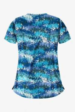 Butter-Soft Alluring Stripes Ceil Women’s 2-Pocket V-Neck Print Scrub Top