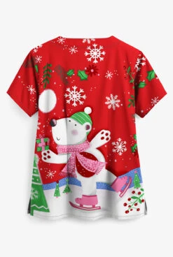 UA Polar Bear Fun Red Women’s 2-Pocket Scallop Neck Print Top