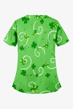 UA Pot O’ Gold Grass Green Women’s 2-Pocket Scallop Neck Print Scrub Top