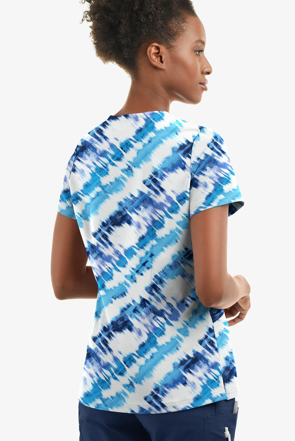 - Features a painterly ikat in shades of blue and turquoise