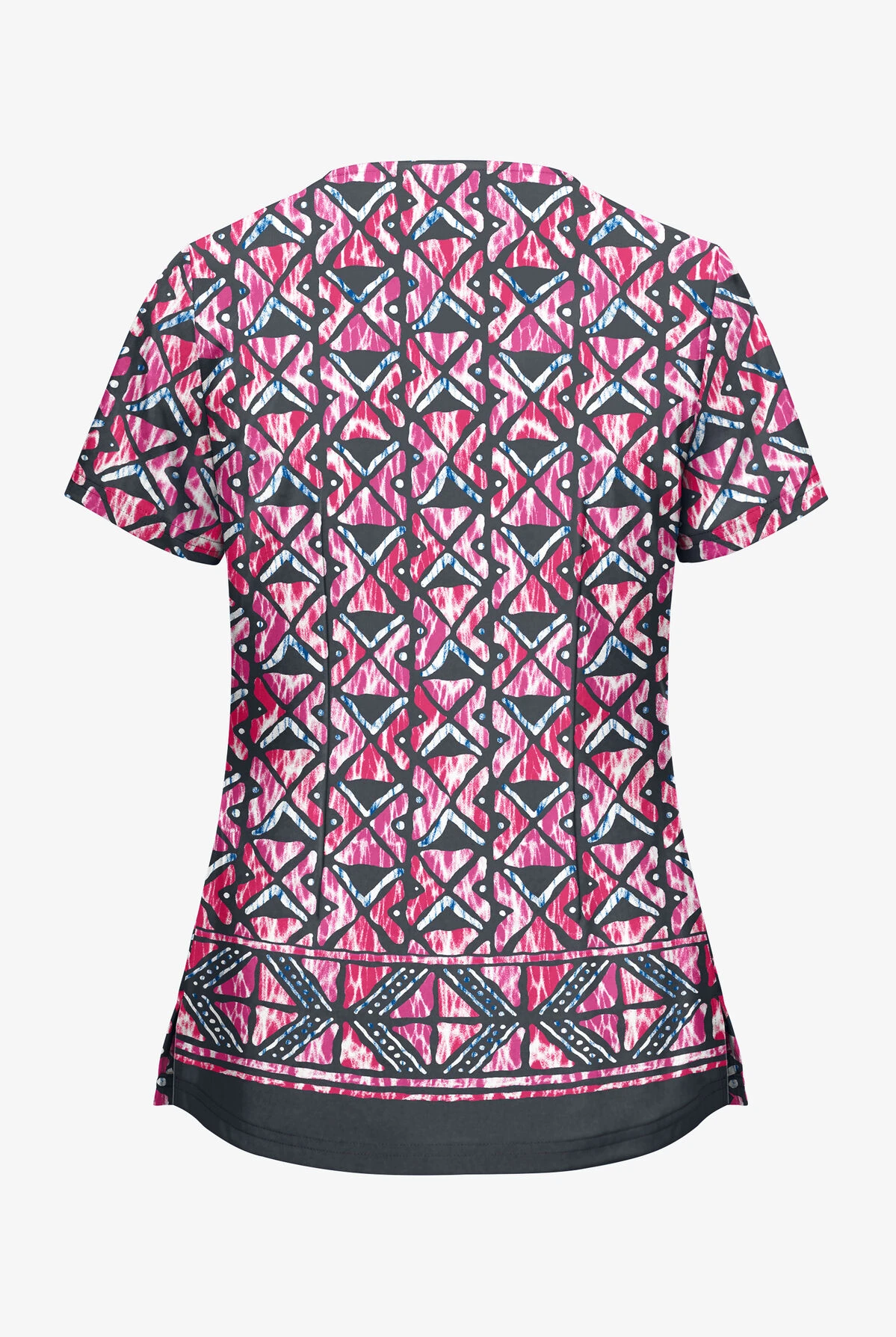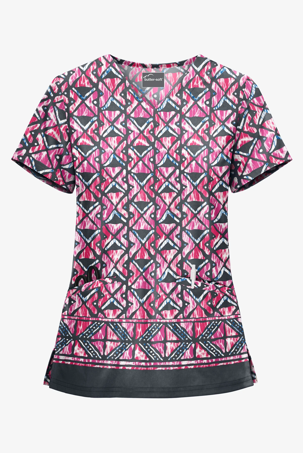 UA Butter-Soft STRETCH Day Dance Pewter Women’s 2-Pocket V-Neck Print Scrub Top