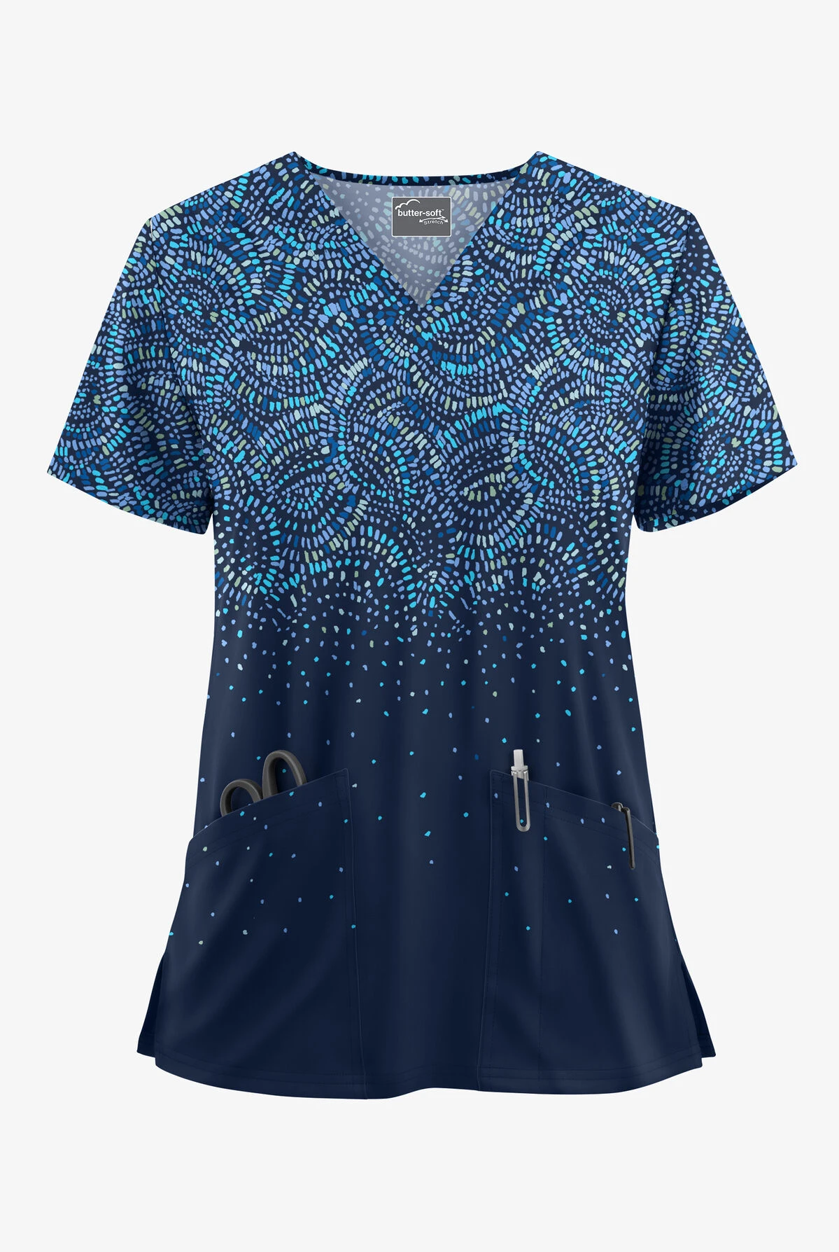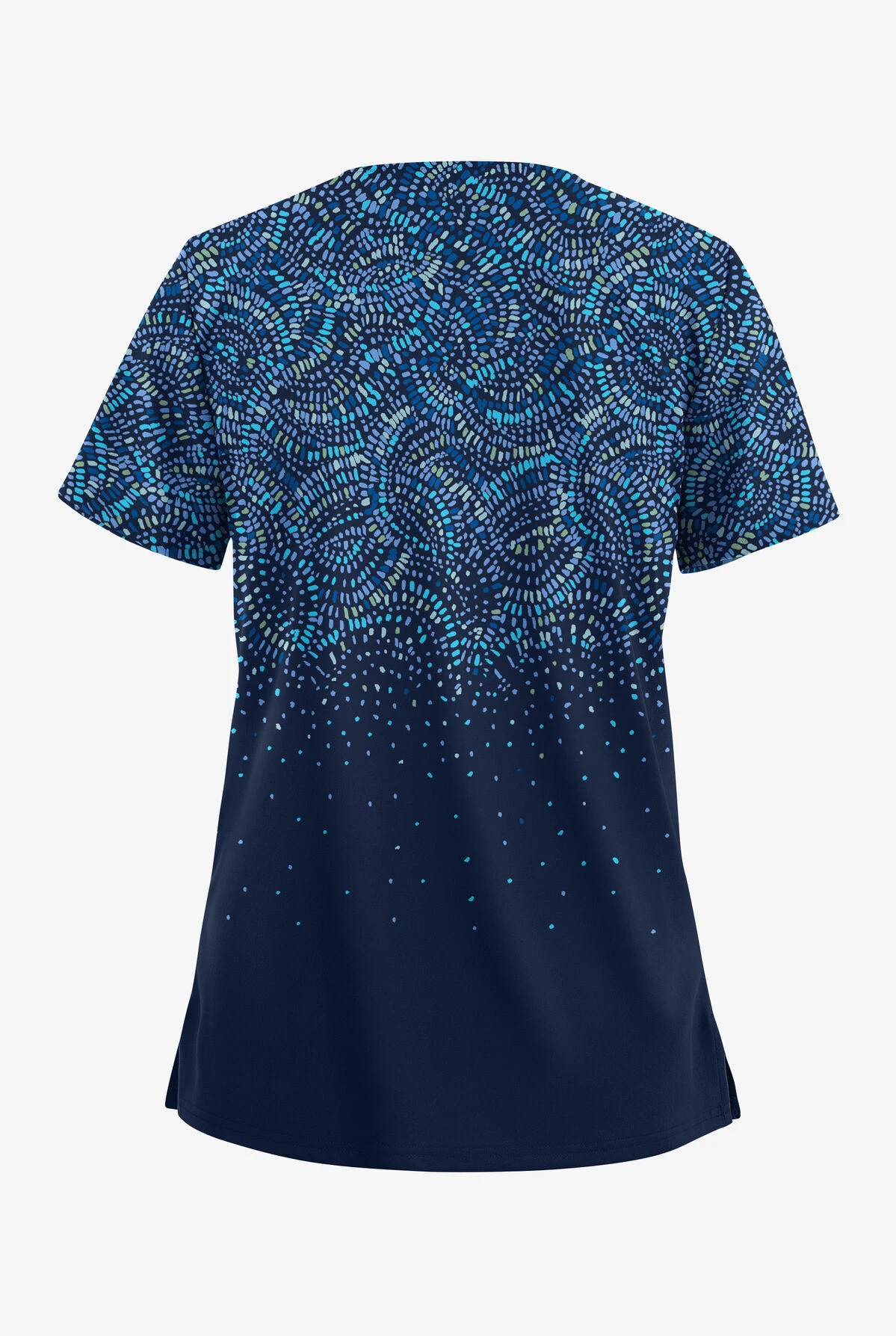 UA Butter-Soft STRETCH Roman Mosaic Navy Women’s 2-Pocket V-Neck Print Scrub Top