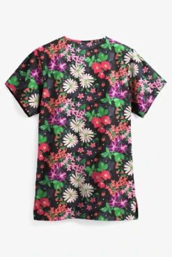 UA Garden Paradise Black Printed Women’s 4-Pocket Princess Seam Scrub Top
