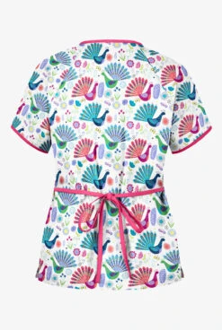 UA Fabulous Peacocks White Printed Women’s 2-Pocket Mock Wrap Scrub Top