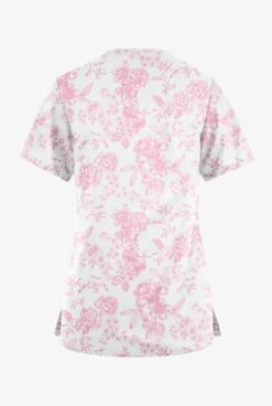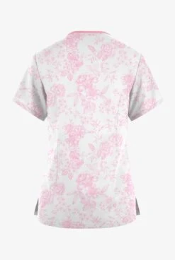 Butter-Soft Originals Etched Roses Blush Women’s 7-Pocket Curved V-Neck Printed Scrub Top
