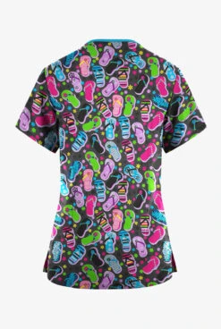 Butter-Soft Originals Flip Flop Fun Pewter Women’s 2-Pocket Classic Fit V-Neck Printed Scrub Top