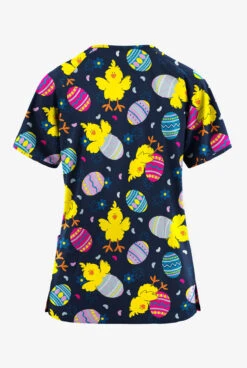 Butter-Soft Originals Easter Egg Hunt Fuchsia Women’s 7-Pocket Curved V-Neck Printed Scrub TopÂ