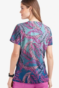 UA Butter-Soft STRETCH Palm Fronds Rosebud Women’s 2-Pocket V-Neck Print Scrub Top