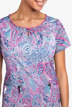 UA Butter-Soft STRETCH Paisley Romance Fuchsia Women’s 6-Pocket Peasant Style Printed Scrub Top
