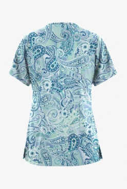 UA Butter-Soft STRETCH Paisley Romance Watermint Women’s 5-Pocket V-Neck Scrub Top