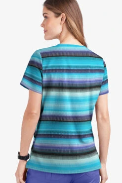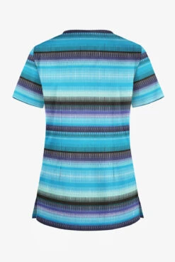 UA Butter-Soft STRETCH Reigning Stripes Turquoise Women’s 2-Pocket V-Neck Print Scrub Top