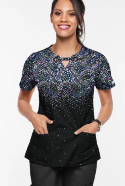 UA Butter-Soft STRETCH Romanian Ikat Dew Drop Women’s 4-Pocket Crisscross Print Scrub Top